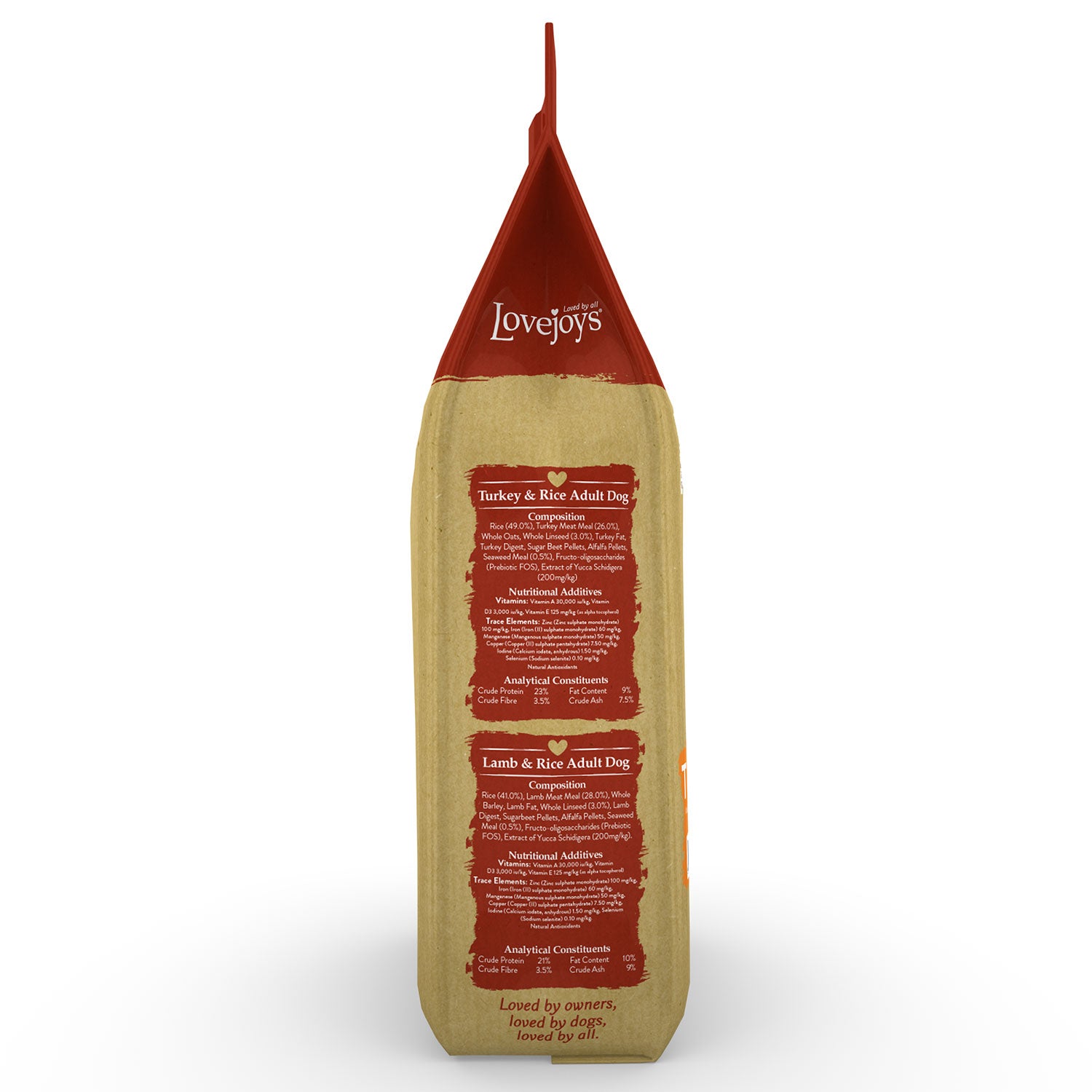 Lovejoys Original dry food is complete and suitable for all dogs aged 8 weeks and over. Feeding amounts are a guide only, as needs can vary based on breed, age, and activity level. Feed to maintain a healthy, lean body condition, introduce new food gradually, and always ensure fresh, clean water is available.