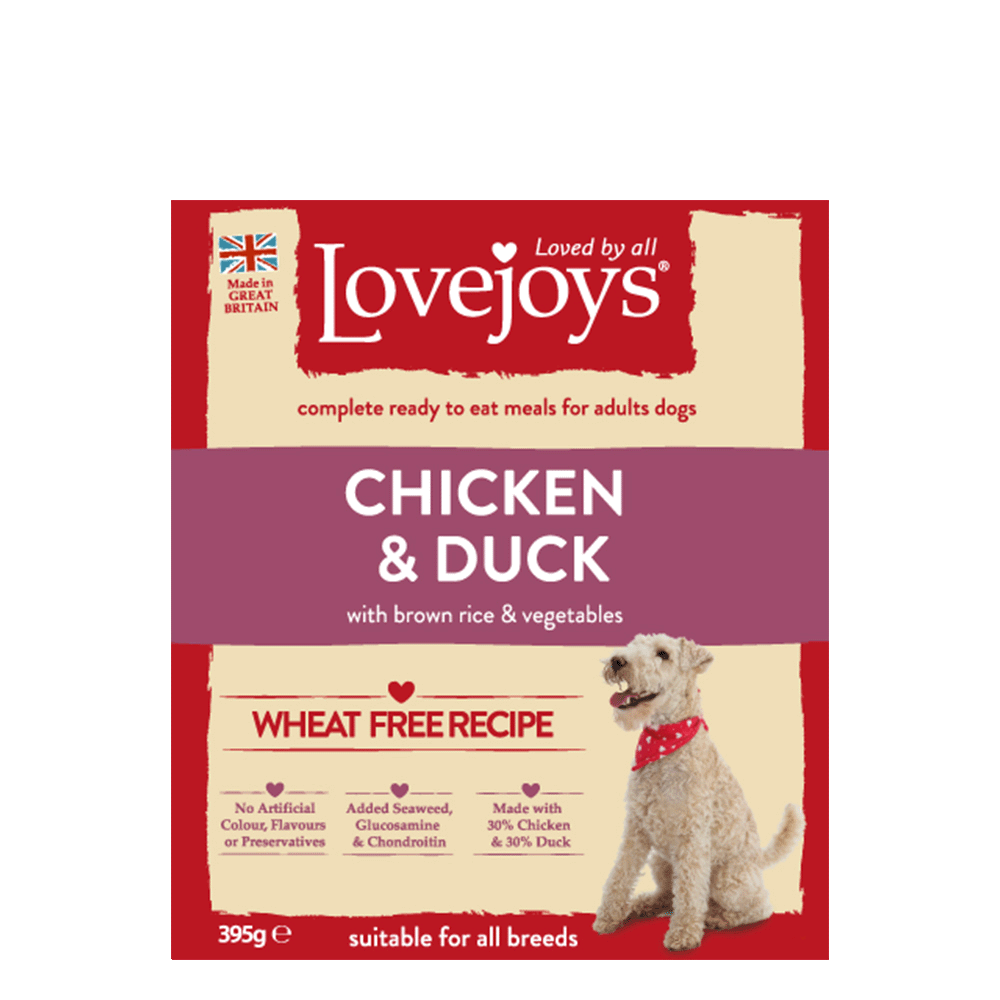 Active adult dogs need a good, balanced diet to ensure they get all the goodness and nutrition they require, and our trays of Chicken & Duck with Brown Rice & Vegetables contain everything they need for a healthy, active life. Lovejoys are proud to make wheat and gluten free dog food that is ready to eat and hypoallergenic.