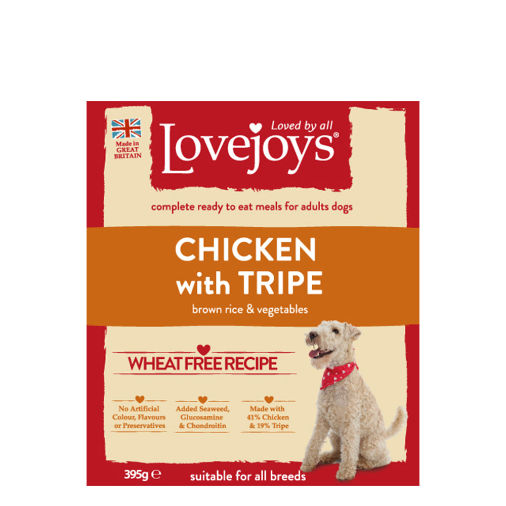 Lovejoys Original wet food is complete and suitable for all dogs aged 8 weeks and over. Feeding amounts are a guide only, as needs can vary based on breed, age, and activity level. Feed to maintain a healthy, lean body condition, introduce new food gradually, and always ensure fresh, clean water is available.
