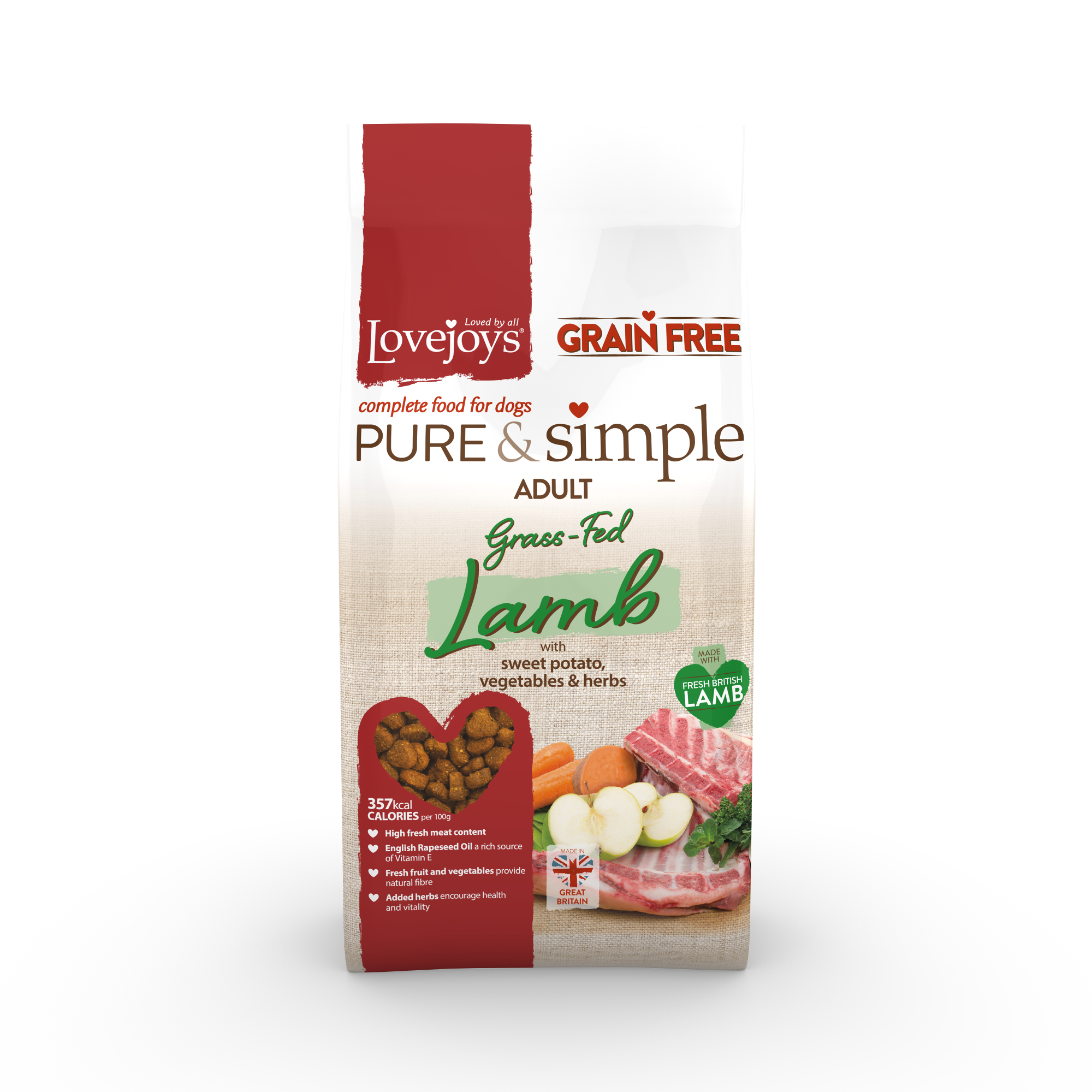 Lovejoys Pure & Simple dry food is complete and suitable for all dogs aged 8 weeks and over. Feeding amounts are a guide only, as needs can vary based on breed, age, and activity level. Feed to maintain a healthy, lean body condition, introduce new food gradually, and always ensure fresh, clean water is available.